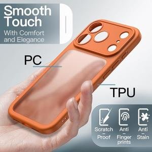 JETech Matte Case for iPhone 17 Pro 6.3-Inch, Shockproof Military Grade Drop Protection, Full Camera Lens Protection, Frosted Translucent Back Minimalist Phone Cover (Orange)