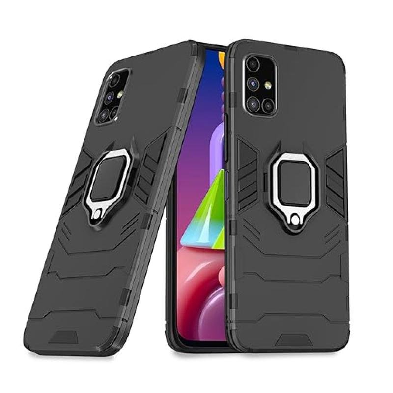 Pikkme Samsung Galaxy M51 Back Cover | D5 Tough Armor Bumper | 360 Protection Case | Ring Holder Stand Case for Samsung Galaxy M51 (Black)