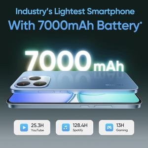 realme 15T 5G Smartphone 7000mAh Battery 6.57 inch 120Hz AMOLED Display 128GB ROM 8GB RAM 60W Fast Charge, IP69 Water Resistance Support Fingerprint GPS Bluetooth Dual Stereo Speakers (Silk Blue)